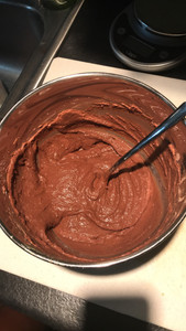 While the brownies are baking, make the frosting by combining all the dry ingredients thoroughly in a small bowl. Add 10mL of water to start and then slowly add water until you get your preferred frosting consistency.